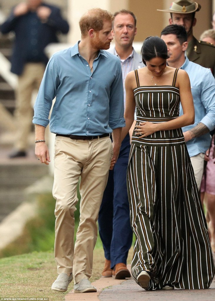 Ancora chic l’abito nero con bottoncini bianchi di Emilia Wickstead (un po’ troppo lungo per lei) con cui Meghan ha partecipato alla cerimonia all’ANZAC Memorial, abbinato al cappellino Philip Treacy che abbiamo visto il giorno del suo compleanno al matrimonio di amici nel Surrey (ve lo ricordate? Un matrimonio e un compleanno ).