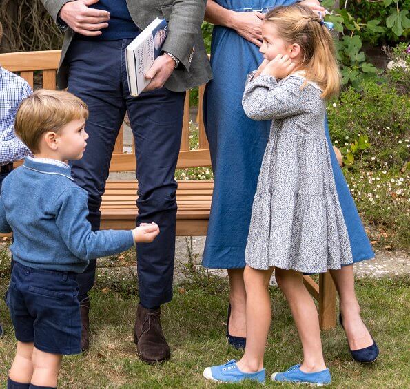 Il piccolo Louis ha ereditato dal fratello maggiore camicia a quadretti, polo melange, e calzoncini; Lady Violet adora il dettaglio dei calzettoni che non raggiungono il ginocchio, tormento di ogni pupetto/a dotato/a di polpaccetti torniti (sì, è autobiografico). Casual chic per Charlotte (in Zara) e per la mamma, con uno chemisier in denim di Gabriela Hearst, dal bel modello che evoca gli anni ’50 (ma non fatevi confondere dall’apparente semplicità, è un capo made n Italy che costa quasi 1500 euro).