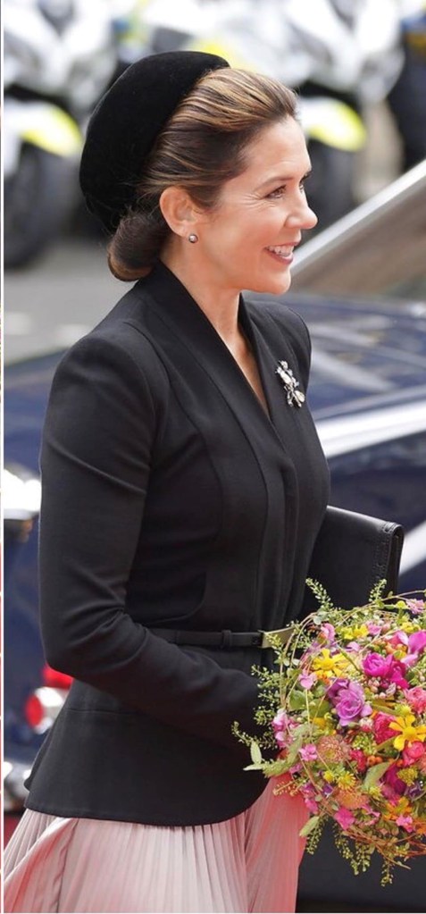 La sorella minore Benedikte, vedova del principe tedesco Richard zu Sayn-Wittgenstein-Berleburg, è secondo Lady Violet una delle donne più chic in circolazione, ed è anche molto bella. Incidentalmente ama anche il viola, e anche questa volta non ha voluto deluderci: soprabito in tweed e un feltro deep purple impeccabilmente inclinato. Splendida.