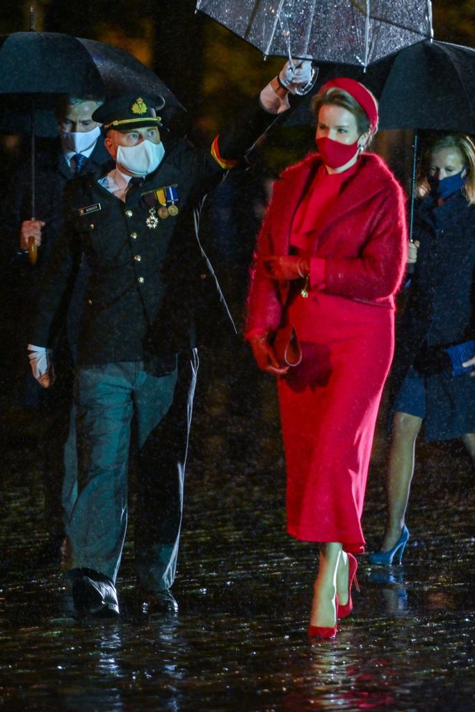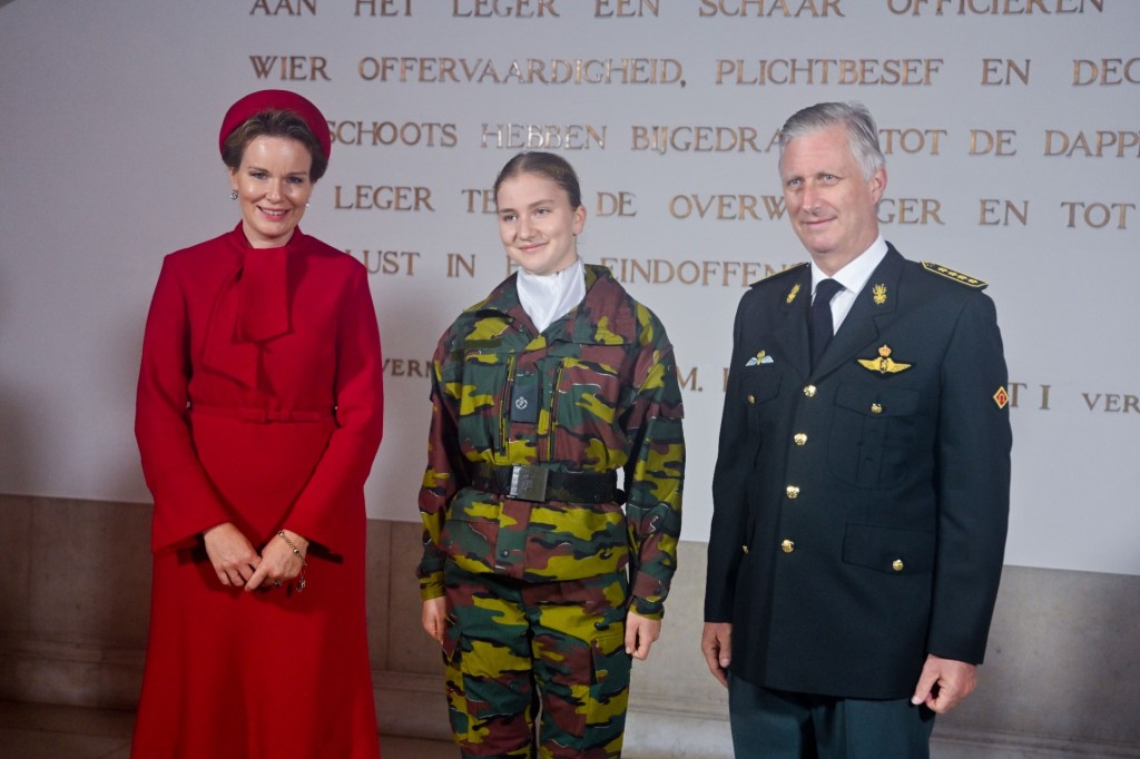 Il giorno (anzi, la sera) dopo si replica con la sua gemella diversa, la Regina dei Belgi, che con la famiglia al completo ha presenziato all’inaugurazione dell’anno accademico della École Royale Militaire, frequentata dalla figlia maggiore Elizabeth. Come Máxima anche Mathilde è alta e bionda; purtroppo è anche fedelissima di Natan, che l’altra frequenta con minore accanimento. Questa volta Edouard Vermeulen, boss della Maison belga, impone alla sua sovrana un abito da istitutrice che le regala una decina d’anni e un paio di taglie, completato da un giacchino di mohair e dalla mascherina d’ordinanza, mentre Fabienne Delvigne fornisce la clutch e il solito bandeau, che francamente inizia a stufare.