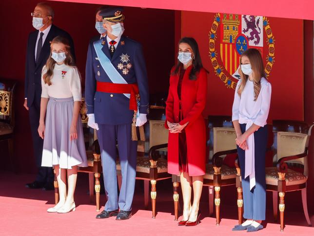 Festa nazionale oggi in Spagna, in tono minore e nel totale rispetto delle norme anti covid: una cerimonia semplice nel cortile di Palazzo Reale, mascherine e distanziamento. Non c’è stata la tradizionale parata, ma c’è stato il volo della Patrulla Águila, la pattuglia acrobatica spagnola.