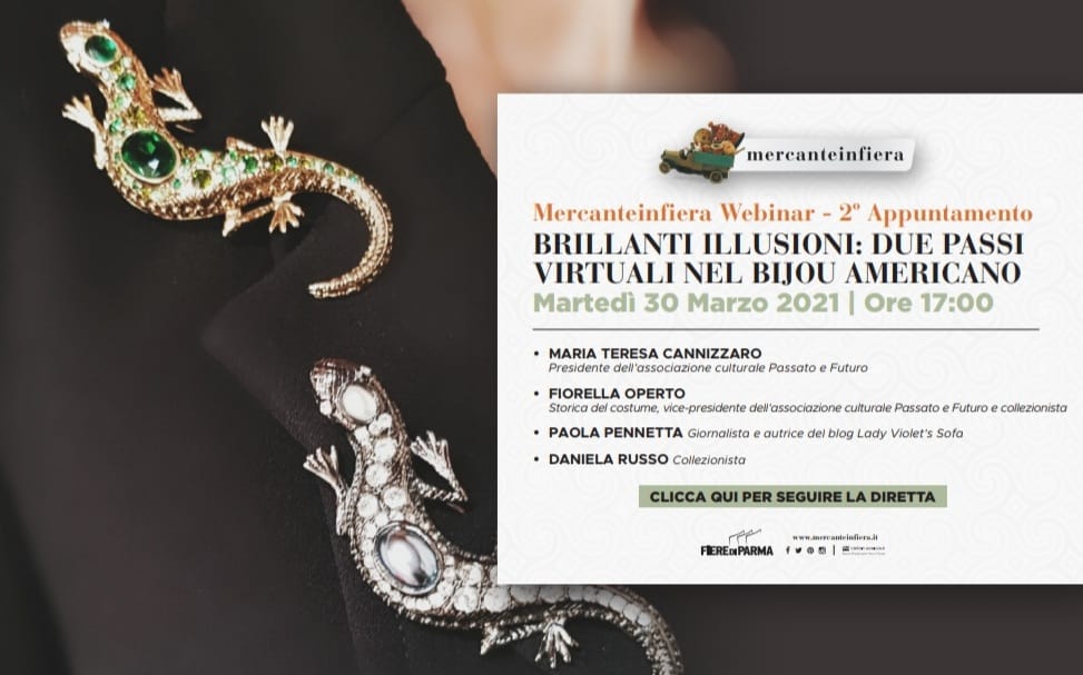 Mercante in Fiera – cioè la splendida realtà delle Fiere di Parma – ha invitato me insieme con grandi esperte del bijou americano ad accompagnarvi in un breve viaggio in questo magico mondo. Oltre a un po’ di storia del gioiello non prezioso si parlerà del ruolo fondamentale degli artigiani italiani immigrati negli USA, e di grandi protagonisti come Kennteh Jay Lane. Ma ci sarà anche posto per il più regale degli accessori, declinato in versione meno impegnativa, e sarà proprio Lady Violet a trattare l’argomento.
