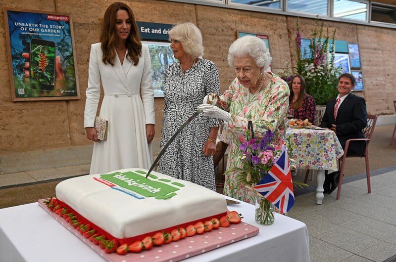 Ad onta del clamoroso squilibrio tra i rappresentanti dei due sessi che segna un netto 6 a 1 in favore dei maschi, se dovessimo dare un titolo all’evento ci piacerebbe chiamarlo pink power, in onore delle importanti signore che hanno aperto e chiuso le danze di rosa vestite. E siccome ubi major con quel segue, iniziamo dalla fine cioè dalla visita – la prima in veste ufficiale – che i Biden hanno fatto alla Regina per l’inevitabile afternoon tea a Windsor Castle.