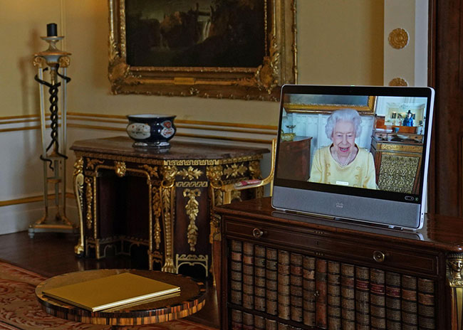 Sbirciando lo schermo del pc, Her Majesty è apparsa dimagrita ma rilassata e sorridente come sempre,e l’impressione trova conferma dalla fotografia diffusa dagli account reali.