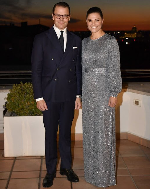 Fine settimana con doppio giorno festivo, dunque anche la nostra rubrica raddoppia coprendo due settimane! Si parte col breve tour in Italia, dal 18 al 20 ottobre, dei futuri sovrani di Svezia con una delegazione di aziende. Victoria ha indossato principalmente capi semplici da working girl, ma la sera di lunedì, ospite dell’ambasciatore svedese a Roma, si veste da principessa. Forse esagerando, perché le altre signore fotografate erano in corto. Ma insomma, the belle of the ball è lei, e si nota.