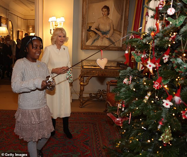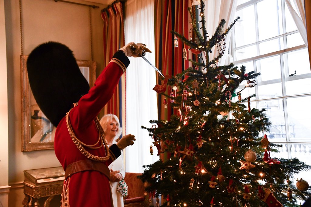 Il momento clou è l’allestimento di un grande albero: i piccoli ospiti possono scegliere la decorazione che preferiscono, e approfittare dell’aiuto di una Welsh Guard – in questo caso lo scudiero di Camilla, l’Equerry Ed Andersen, perfetto anche nel nome – a sistemarli.