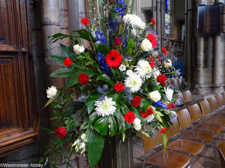 La cerimonia nell’Abbazia di Westminster ne ha interessato l’area interna, la più sacra, compresa tra il Quire (il Coro), il Sacrarium e il Poet’s Corner. L’addobbo floreale era stato pensato come ulteriore omaggio alla vita di Philip, e composto nei colori rosso bianco e blu, quelli della bandiera del Regno Unito (e rosso a parte, anche quella della natia Grecia).