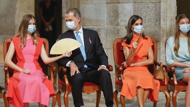 Anzi, Leonor è accorsa in aiuto del padre, abbigliato e incravattato (e accaldato) come da protocollo.