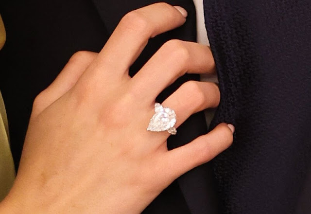 Queste fotografie hanno attirato una grande attenzione; più che per la mise, per gli orecchini che brillano alle orecchie della futura sposa. Sono i favolosi Plumage della linea Magnipheasant del gioielliere londinese Stephen Webster. Realizzati con diamanti bianchi e gialli per la Regina Rania, che li ha prestati alla futura nuora. E non sono i soli, anche gli orecchini che Rajwa indossa oggi – due diamanti montati su cerchi di oro rosa – sono un prestito della futura suocera.