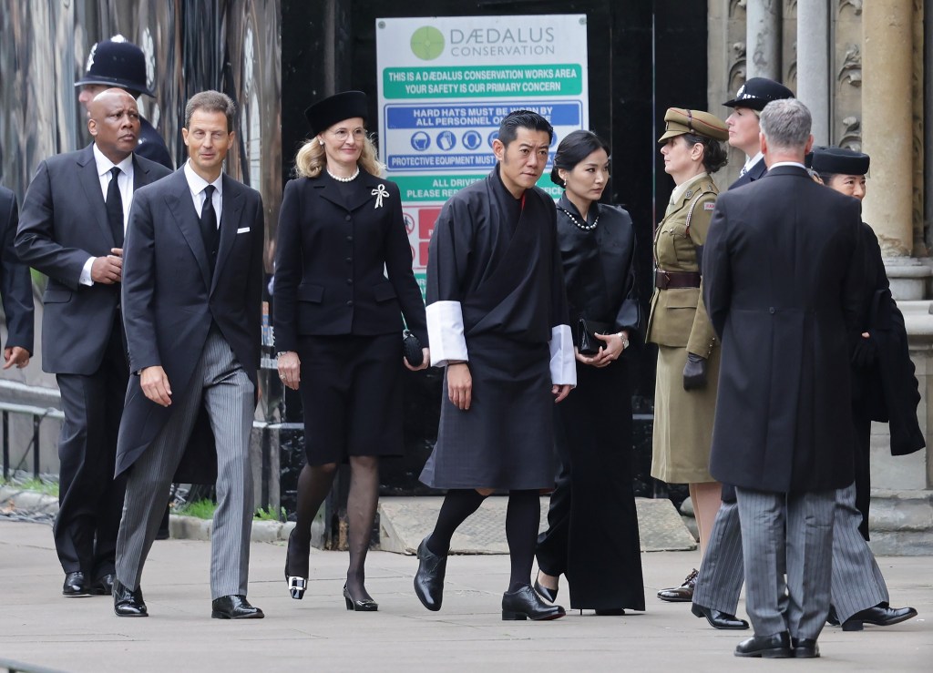 Anche l’ultima volta che l’abbiamo vista la sovrana era in monocolore, più esattamente in total black, e con lei il re suo marito: entrambi vestiti rigorosamente a lutto – e chic come pochi altri – per i solenni funerali di stato di Queen Elizabeth; davanti a loro si intravvede l’Imperatrice del Giappone, dietro i principi ereditari del Liechtenstein.