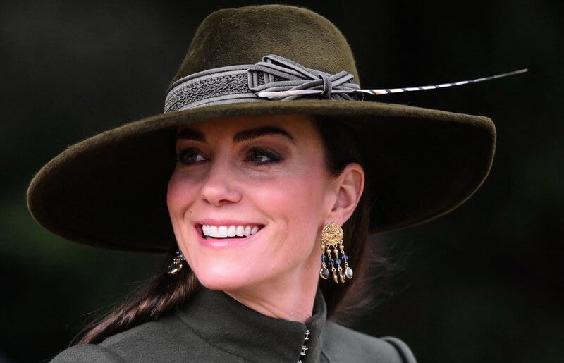 Il grande Philip Treacy fa meglio, e molto, con la Principessa di Galles, dotata di un bel cappello verde loden a tesa ampia con penna di fagiano; la campagna inglese nella versione più elegante. In nuance il cappotto (riciclato) Alexander McQueen, modello militare e linea slim come piace a lei, ma quelle pieghe danno un volume diverso, e questa volta piace anche a Lady Violet, chic. A patto di dimenticare quegli orecchini vagamente etnici – andati subito sold out – che non c’entrano proprio niente.