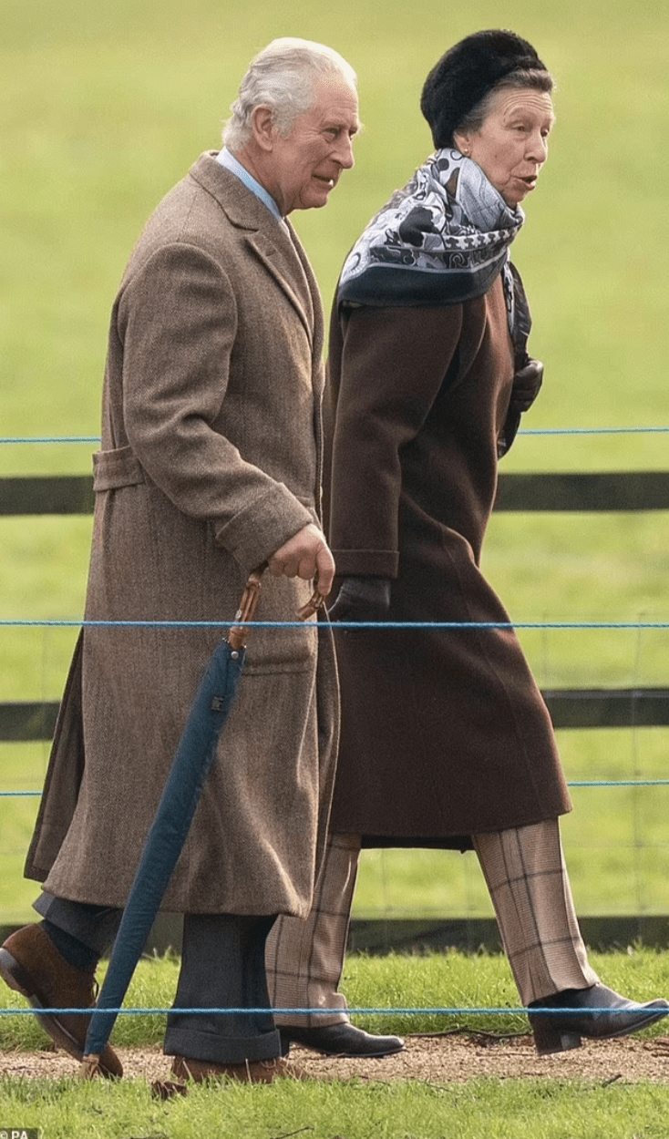 Oggi non cera la Queen Consort Camilla, ma il sovrano era comunque in ottima compagnia, quella della sorella Anne. Che con stile intramontabile nonché ineffabile ha sfoggiato uno di quei pillbox di pelliccia – di solito castoro, ma anche maculato per le più audaci – tanto di moda negli anni ’60 (mia madre ce l’aveva) che sono certa arriva direttamente da quell’epoca. Potenza del vintage!