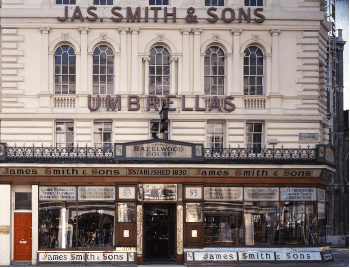 E quando il Regno Unito non era ancora il paradiso dello shopping (almeno non quello abbordabile) uno dei souvenir classici era un bell’ombrello. Magari uscito da James Smith & Sons, blasonatissimo negozio artigianale che ripara le teste di Ladies&Gentlemen dal 1830. Occupa ancora, da ben 170 anni, lo splendido negozio vittoriano al numero 53 di New Oxford Street e vale assolutamente una visita; per raggiungerlo basta chiedere di The Umbrella Shop, il negozio di ombrelli per antonomasia.