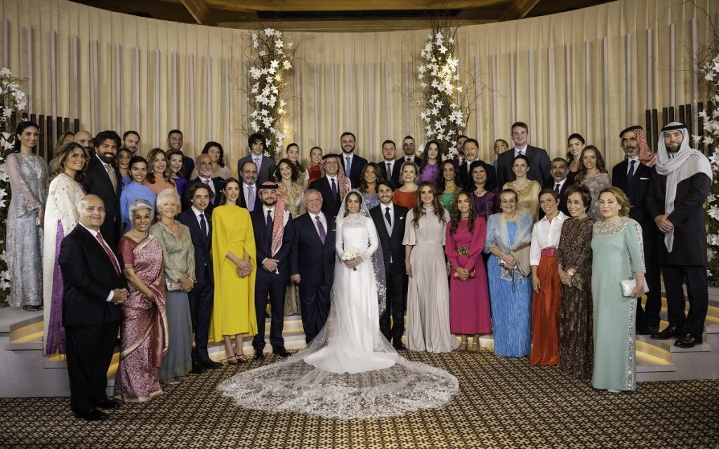 Nella foto con tutta la famiglia reale giordana, terza da sinistra in prima fila è la nonna paterna della sposa, la principessa Muna, elegantissima in grigio e verde oliva. In seconda fila, al secondo e terzo posto da destra una coppia di cui abbiamo parlato qualche mese fa, protagonista di un amore romantico quanto inatteso: Ghazi bin Muhammad, cugino del re, e la moglie Maryam al Ghazi, nata Miriam Ungría y López, già Principessa vedova di Tărnovo (il post dedicato a loro lo trovate qui Che fantastica storia).