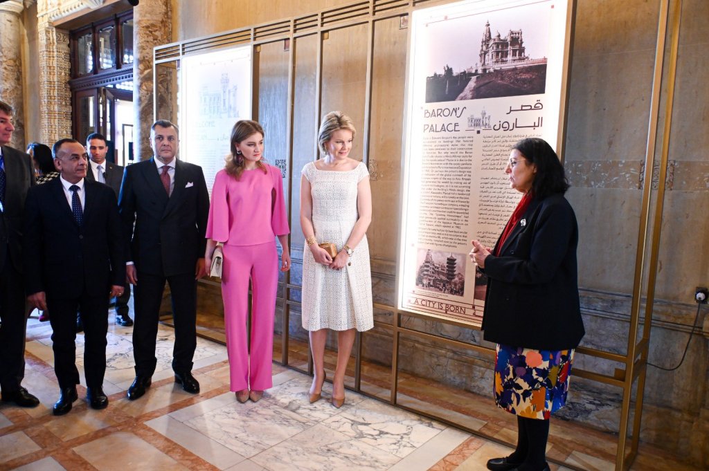 Abbiamo detto fucsia? e fucsia sia. Elisabeth del Belgio, accompagnata dalla madre Mathilde ha compiuto un viaggio in Egitto sulle orme della trisavola di cui porta il nome, che appassionata di egittologia nel febbraio 1923 assistette all’apertura della tomba di Thutankhamon. Madre e figlia hanno dato la preferenza ad abiti pratici e semplici, ma per l’inaugurazione della mostra dedicata all’avventura archeologica della defunta sovrana hanno scelto qualcosa di più glam. Per Elisabeth un completo Emporio Armani composto da giacchina e pantaloni in cady tecnico, più grandi orecchini dello stesso colore e dello stesso brand. Il modello della blusa, che riprende l’idea dei cape dress materni mi impensierisce un poco, ma voglio fare un atto di fede. Deliziosa Mathilde con un grazioso abito in sangallo avorio firmato Natan che ogni tanto – piuttosto raramente – indovina la creazione di una mise. Chic+chic.