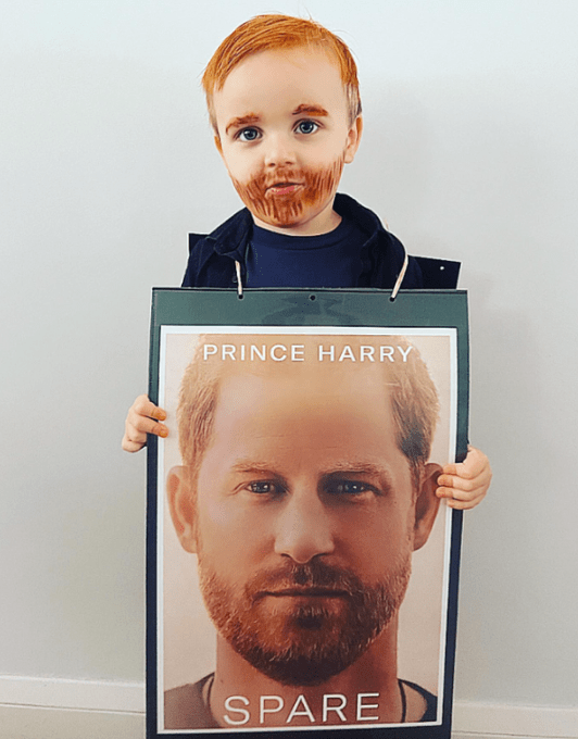 Ed ecco la ragione di questo post! Carnevale è appena passato, e non sono mancate le maschere ispirate al mondo royal. Più che a regine e principesse delle fiabe, molte bimbe si sono vestite come la defunta Queen Elizabeth: colori pastello, cappellino e corgi di peluche, qualcuna perfino scortata da una (o due) grenadier guard. Questo però non l’avevamo mai visto: un piccolo gingerhead per celebrare il World Book Day, la giornata internazionale del libro. Game set match.