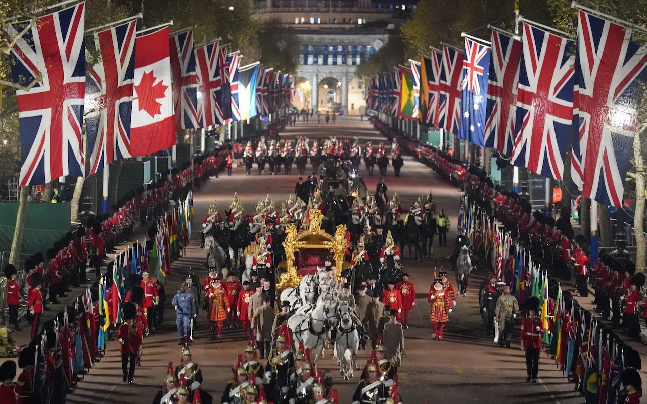 Il corteo reale partirà da Buckingham Palace alle 10.20 (11.20 in Italia), la cerimonia di incoronazione inizierà alle 11.00 (mezzogiorno da noi) e durerà un paio d’ore, poi King Charles III e Queen Camilla faranno il tragitto inverso, questa volta a bordo della Gold State Coach. La carrozza era stata commissionata per matrimonio e incoronazione di King George III, nel 1761, ma fu terminata solo l’anno seguente, per cui fece il suo debutto nel 1762, il giorno dell’opening of Parliament. A partire da quella di William IV nel 1831 è stata usata per tutte le incoronazioni.