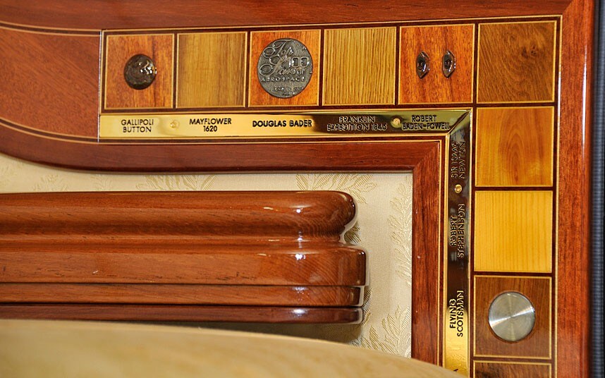 Realizzata in Australia per celebrare i 60 anni di regno di Queen Elizabeth è molto più confortevole dell’altra, con aria condizionata, finestrini elettrici, e un ottimo sistema di ammortizzazione (viaggiare in carrozza non è così piacevole come si potrebbe pensare, c’è bisogno di una certa pratica e di uno stomaco di ferro). La decorazione usa il linguaggio dei simboli ma con una certa sobrietà: sul tetto troneggia – mai termine fu più adatto – una corona intagliata nel legno di quercia della HMS Victory, vascello protagonista della battaglia di Trafalgar, che riportò in patria il corpo di Nelson. All’interno sono inseriti frammenti di materiali diversi dalla più disparata provenienza ma particolarmente significativi per la storia britannica; c’è anche un pezzetto del melo grazie al quale Sir Isaac Newton scoprì la legge di gravità (l’albero esiste ancora e si trova nel giardino di Woolsthorpe Manor, la sua residenza nel Lincolnshire).