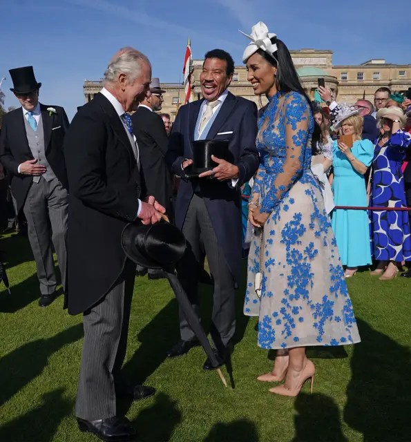 Tra gli invitati anche Lionel Richie, accompagnato dalla bella fidanzata Lisa Parigi. Reduce dal fastosissimo matrimonio della figlia Sofia (e direi pure da un lifting ugualmente poco discreto) l’artista è sembrato assai felice di incontrare il Re, per il quale si esibirà domenica, nel concertone a Windsor.
