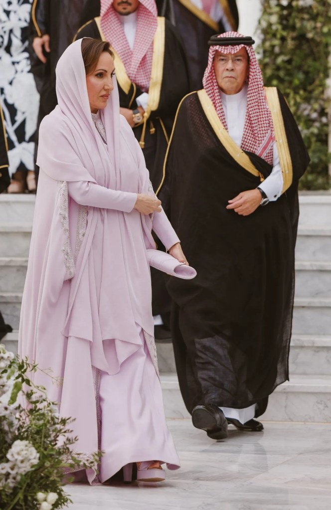 Stesso colore per Azza Al Sudairi, madre della sposa, in compagnia del marito e della famiglia saudita. Lei ha i capelli coperti da un velo all’uso del suo Paese. Entrambi i padri degli sposi parteciperanno attivamente al rito islamico, mentre le due madri seguiranno la cerimonia sedute vicine.