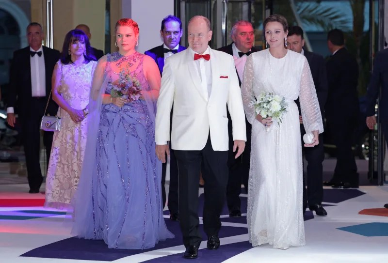 Premessa. I lettori meno giovani, quelli che ricordano i tempi di Grace, probabilmente avranno la stessa impressione che ho avuto io, e non solo in questa occasione: col passare del tempo Monaco ha perso molto del suo smalto e tutto il suo glamour. L’unica ad avere ereditato lo stile materno è Caroline, ma più passa il tempo, più le nuove generazioni crescono, più evapora quell’aura particolare che il Principato aveva nel Novecento. Questo secondo me è particolarmente evidente nel Gala della Croce Rossa, appuntamento clou dell’estate, che durante il regno di Rainier e Grace riempiva pagine e pagine di ogni rivista da sfogliare sotto l’ombrellone e ora a me fa spesso un po’ tristezza. Probabilmente anche perché a un certo punto i fratelli si sono divisi le soirée: a Caroline il primaverile Bal de la Rose, a Albert – e alla sua gentile signora, ove disponibile – l’estivo gala. Dobbiamo ammettere che il sovrano, vero principe azzurro della mia generazione, ha perso con i riccioli biondi (ce li aveva, giuro!) molto del suo fascino, almeno quello che si apprezza dalle foto patinate. E Charlène, mi spiace dirlo, pur con la sua bellezza, e pure quando indovina la mise, non ha quello charme che dava a Monaco una allure incantevole e incantata. Tutto ciò premesso, passiamo all’edizione di quest’anno; presenti della Famille Princière solo i sovrani e la giovane Camille, figlia minore di Stéphanie.