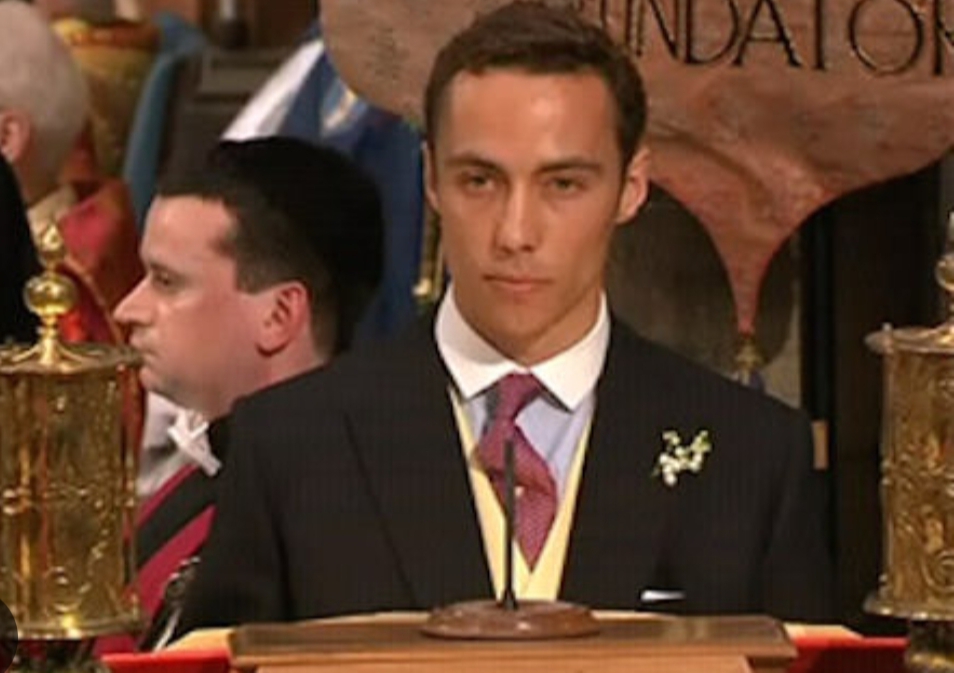 Quel giorno il giovanissimo James (aveva solo 24 anni, essendo nato il 15 aprile 1987), fratello minore della sposa, apparve comprensibilmente teso, fragile ma determinato, conquistando almeno altrettanti estimatori di quelli affascinati dal derrière dell’altra sorella, designata damigella d’onore e autopromossa star della giornata. Negli anni James ha perso l’aspetto delicatamente spaesato, ha acquisito maturità e si è fatto crescere la barba assumendo un po’ quell’aria che fa tanto King George V e in ambito royal funziona dunque assai.