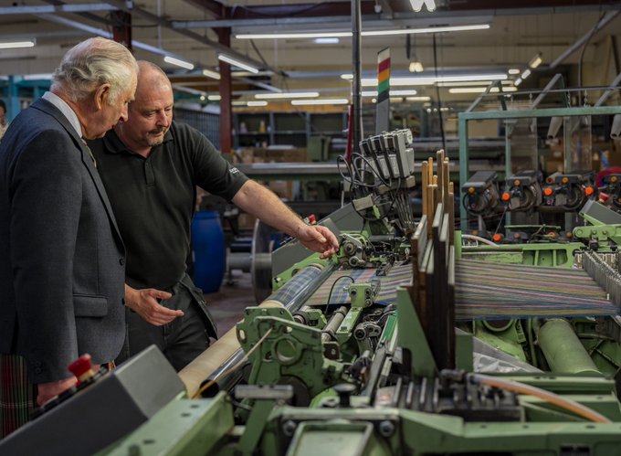 Dall’altra King Charles ha assistito al Braemar Gathering, che si svolge tradizionalmente il primo sabato di settembre e mette in scena un grande classico dei giochi delle Highlands: il lancio del tronco. Per la prima volta il re ha sfoggiato il suo nuovo tartan, nei colori blu rosso e verde, creato appositamente nei laboratori tessili di Lochcarron of Scotland, in riconoscimento del grande impegno del sovrano nel preservare la tradizione tessile scozzese.