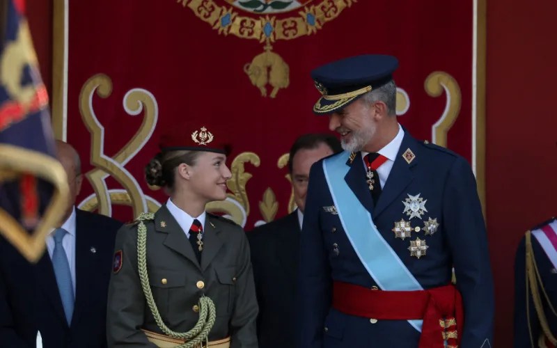 Il padre Felipe, essendo il capo di tutte le Forze armate, alterna le uniformi dei vari corpi, e quest’anno indossa quella di Capitano Generale dell’Esercito dell’Aria, l’aeronautica militare.