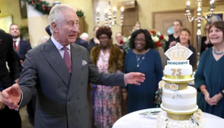 Penso gradirete la fotografia a figura intera della Duchessa di Edimburgo, che ho scelto esclusivamente per mostrare adeguatamente la sua mise, eventuali altre presenze sono, come dire, un valore aggiunto. Sophie fa una scelta molto interessante, riusando l’abito indossato sotto il mantello del Royal Victorian Order il giorno dell’incoronazione dei cognati. Il problema però è che l’abito di Suzannah London così funziona di meno. Sarà l’accollatura che non la slancia, sarà la necessaria aggiunta di fascia e placca dell’ordine, oltre al fiocco giallo del Royal Family Order che rende tutto un po’ pasticciato, sarà che i capelli pettinati così le fanno una testa piccina picciò, e la tiara con l’acquamarina non aiuta, ma il risultato finale mi piace veramente poco. In compenso preferisco la sua versione della clutch Maud di Anya Hindmarch, Boh, consoliamoci con lo sfondo.