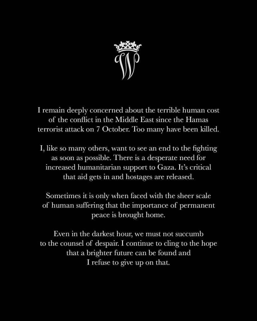 La segreteria del Principe di Galles ha appena diffuso una dichiarazione sulla tragedia di Gaza. William non si schiera né per l’uno né per l’altro, ma la notizia è molto interessante perché non è tanto ciò che dice o non dice, ma il fatto che parli pubblicamente.