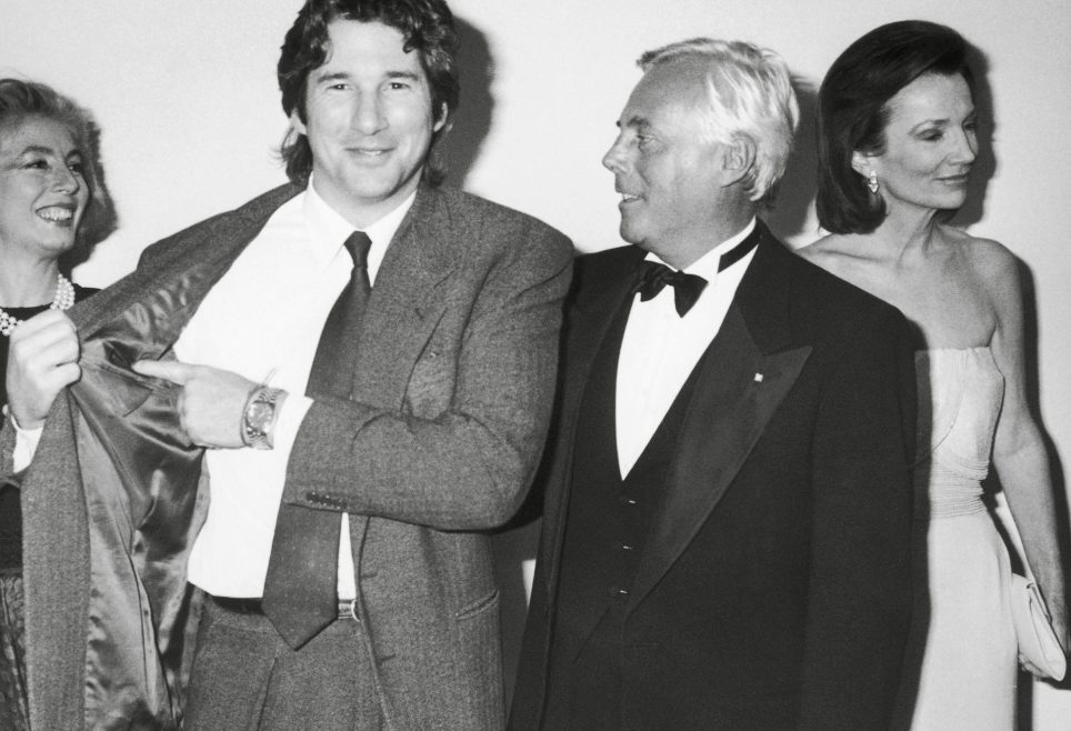 Hollywood, enorme cassa di risonanza, se ne accorge, e nel 1980 un film lancia due stelle nel firmamento. Il film è American Gigolo: rende Richard Gere una star mondiale e apre a Giorgio Armani, che lo dota di un guardaroba completo, le porte delle sterminate praterie americane. Sergio Galeotti ha l’idea di assoldare come specialissima PR Lee Radziwill, sorella di Jackie Kennedy, il cui stile lo ha incantato; anche lei aiuterà Armani a sfondare negli USA. Nel corso degli anni saranno sempre di più le attrici e gli attori a farsi vestire da Armani, creatore di un lusso talmente elegante da far sembrare lo stile hollywoodiano ancora più pacchiano. Nasce l’Emporio, che nel 1987 verrà raccontato da uno spot promozionale diretto addirittura da Martin Scorsese; allo stesso anno risale la definitiva consacrazione del legame tra Armani e il cinema, con la creazione degli abiti indossati dagli Intoccabili, nel film di Brian De Palma. Sono gli anni ’80, quelli dell’edonismo reganiano e della Milano da bere, quelli in cui tutto è possibile. E tutto sembra davvero possibile, ma purtroppo c’è il rovescio del medaglia, e si chiama sindrome da immunodeficienza acquisita, AIDS. Viene identificata nel 1981 e si diffonde in modo tragicamente rapido. Sergio Galeotti si ammala, e muore il 14 agosto 1985; ha compiuto quarant’anni solo 19 giorni prima. Giorgio si trova squarciato dal dolore e dalla necessità di decidere il meglio per le sue aziende.