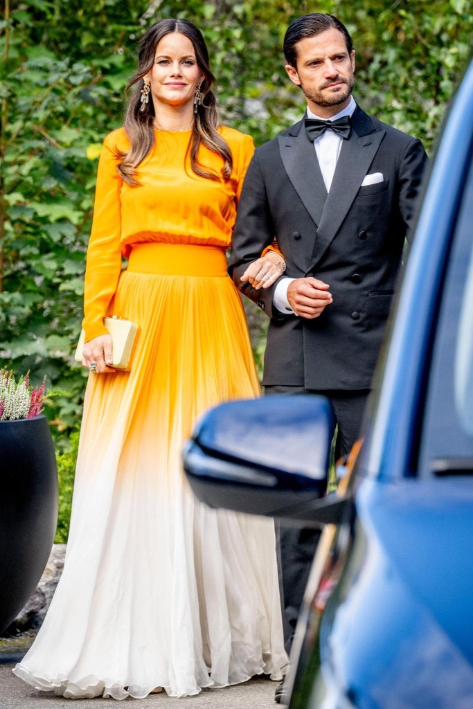 Riuso anche per la cognata Sofia, in attesa del quarto bebè: nel suo caso l’abito dégradé della stilista Lilli Jahilo, già indossato per la cena di gala in onore dei premi Nobel nel 2022 (December chic shock e boh (parte prima). In quel caso mi aveva lasciato qualche perplessità, trovandola una mise non troppo adeguata all’occasione né alla stagione; in questo caso mi piace di più, anche se l’abito è tutt’altro che impeccabile e il color mandarino non esalta la carnagione chiarissima della principessa.