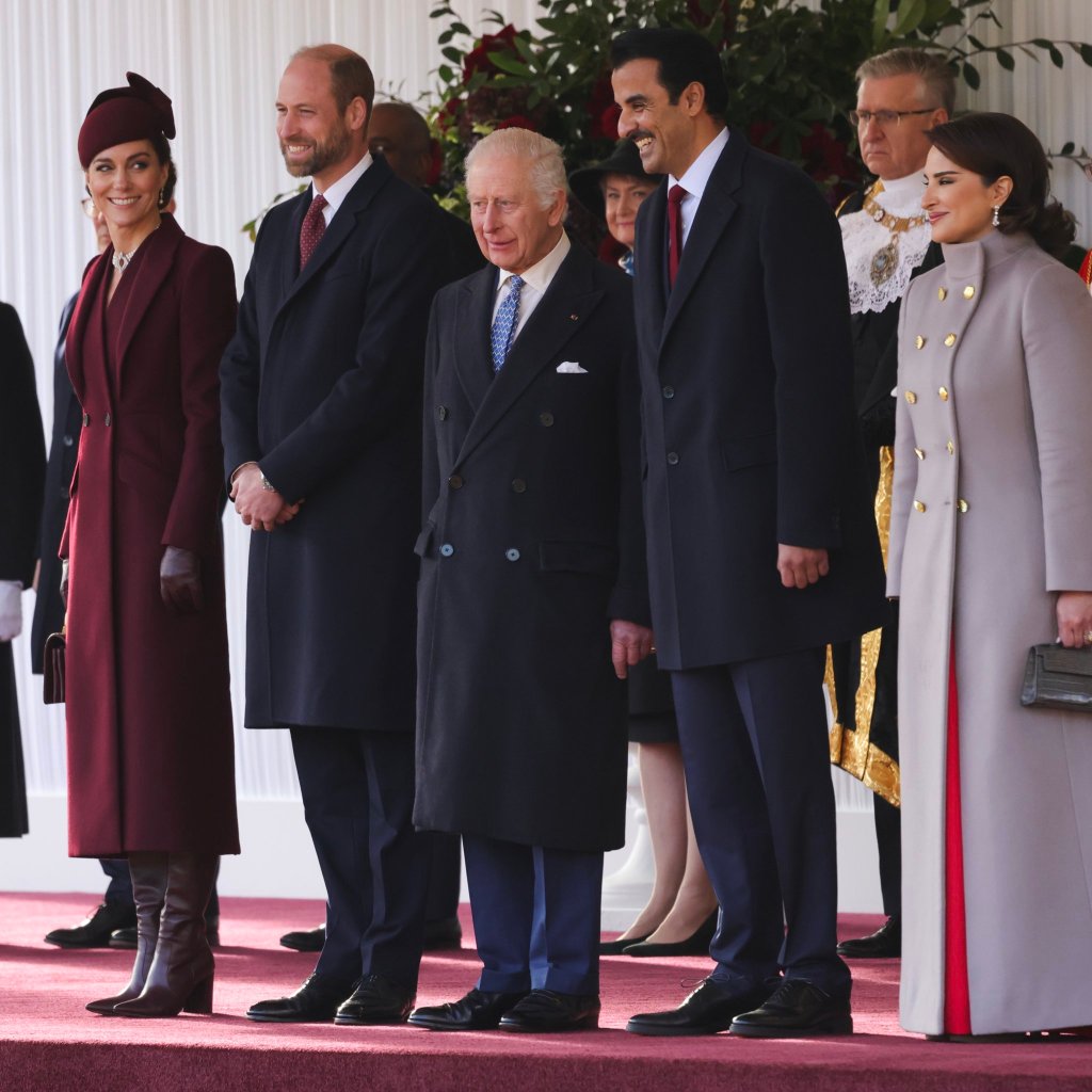 A ricevere i reali qatarioti c’erano i Principi di Galles, che li hanno scortati fino all’incontro con King Charles III. Presente con nostra gioia Catherine ma assente Camilla, che questa sera darà il cambio alla nuora per lo state banquet.