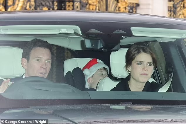 In ogni caso la foto più bella di oggi è questa, con Augustus Brookbanks con cappello babbonatalesco d’ordinanza, addormentato sul sedile posteriore. C’era anche Beatrice; a lei e al marito Edo il 2025 porterà il secondo bebé, atteso per l’inizio della primavera.