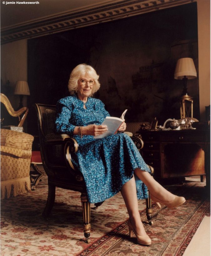 Il Trust celebra lei e il suo amore per la lettura con questa foto, parte del servizio che Vogue le dedicò tre anni fa per il settantacinquesimo compleanno. La foto è esposta alla King’s Gallery di Edimburgo per la mostra Royal Portraits, visibile fino al 7 settembre. Noterete che l’abito è lo stesso della nuova fotografia, il che dice molto della donna. (Edit: un’attenta lettrice mi fa notare che l’abito in effetti somiglia ma non è lo stesso. La ringrazio, e l’osservazione sulla natura di Camilla direi che vale lo stesso).