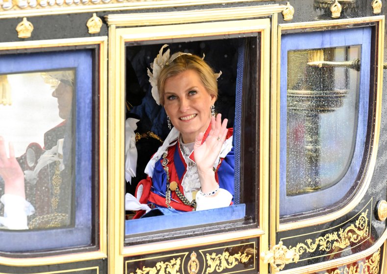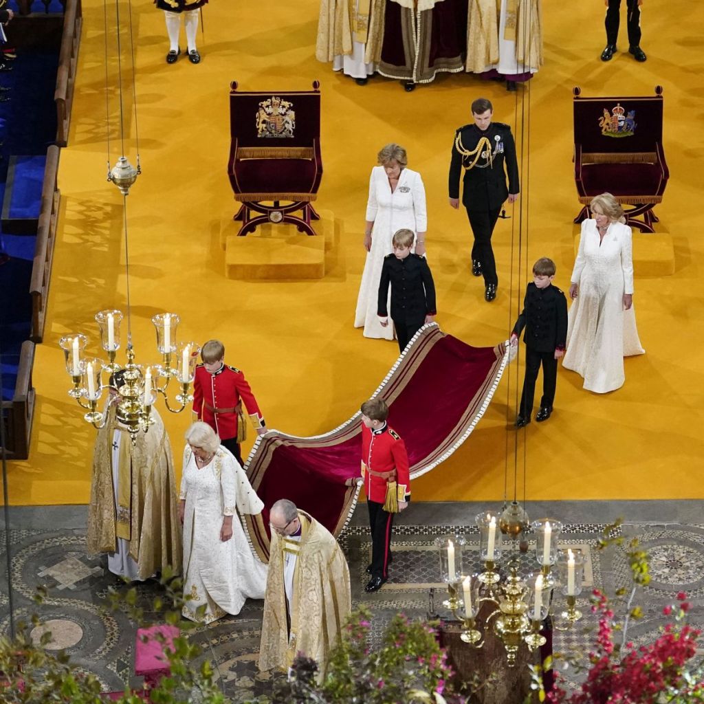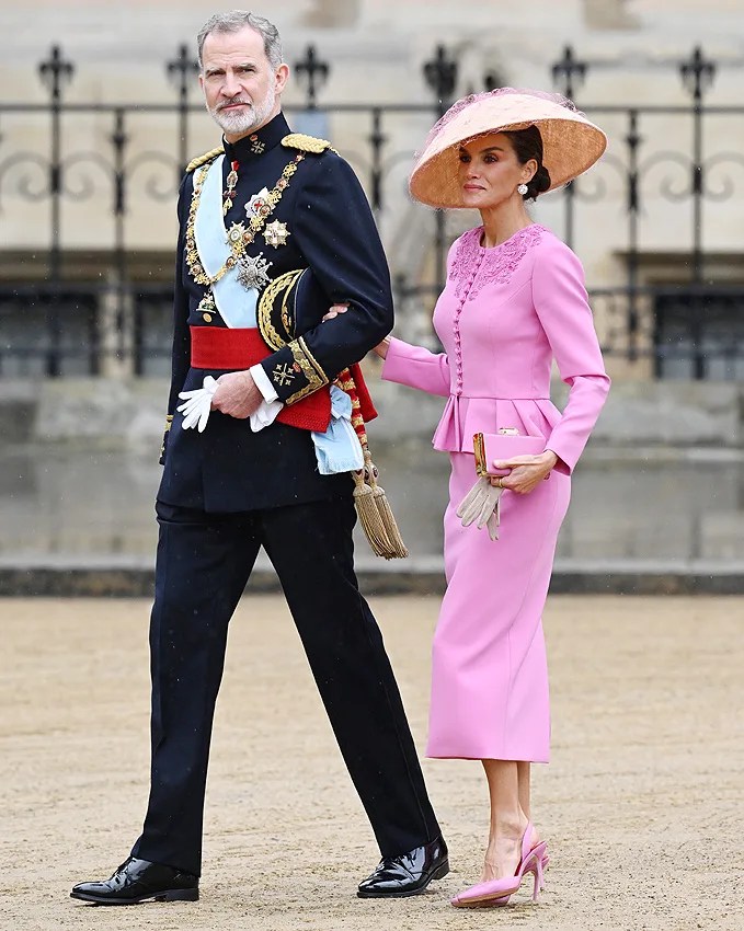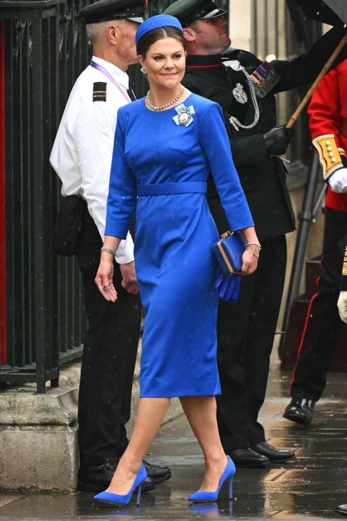 In questo puzzle di citazioni e rimandi, la Duchessa di Edimburgo dichiara la sua neutralità. Il marito cavalcava col Re, i figli sono rimasti a casa, e lei si è accomodata in carrozza col cognato Sir Tim Laurence. Classica – e già vista – la sua mise: abito crema di Beulah London e cappello Jane Taylor. Non ho capito perché il cappello si rialza sul lato opposto al grande fiore, ma tutto è molto classico, very English, piuttosto chic.