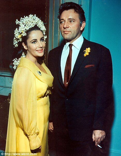 Uscendo dall’ambito reale non possiamo che incrociare la sposa seriale Liz Taylor, dea dagli occhi viola e ostinata dea del matrimonio, essendo andata all’altare per ben otto volte, con sette uomini diversi. Meglio di lei a Hollywood solo Zsa Zsa Gabor, che raggiunse quota nove. Dopo aver impalmato nel 1950 Nicky Hilton (in classico abito bianco, in fondo aveva solo 18 anni), Michael Wilding nel 1952 con un abito da sciura colorato (ma non si sa come, le foto sono solo in bianco e nero) con ampio collo e polsi in organza bianca; Mike Todd nel 1957 (abito a mezze maniche con cappuccio, secondo alcuni azzurro chiaro ma anche qui solo foto in bianco e nero); nel 1959 Eddie Fisher, scippato all’amica Debbie Reynolds (secondo me l’abito più bello, anche lui col cappuccio in chiffon verde oliva); Liz è pronta per la cinquina. Arriva a Roma per interpretare la femme fatale per antonomasia, Cleopatra, e incontra l’amour fou. Lui è un fascinosissimo attore gallese, Richard Burton; nel film è Marco Antonio. L’amore divampato tra la regina egizia e il triumviro romano viene replicato sotto il sole rovente del litorale laziale. Liz e Dick sono entrambi sposati, but who cares? Lui le chiede di sposarlo a gennaio a Toronto, le leggi canadesi pongono una serie di ostacoli ma come si sa omnia vincit amor e finalmente i due riescono a coronare; è il 15 marzo 1964 a Montreal, lei ha ottenuto il divorzio da Fisher solo nove giorni prima.