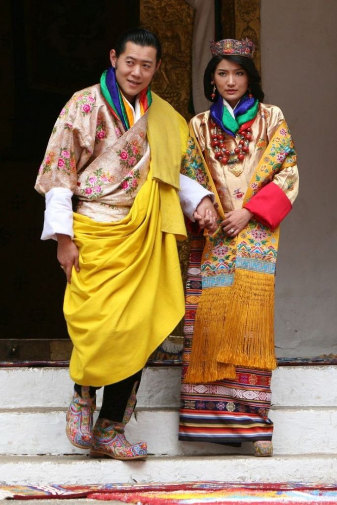 Il giallo oro è protagonista dell’abito con cui l’incantevole Jetsun Pema è diventata Regina del Bhutan il 13 ottobre 2011, e a dire il vero è presente anche nel vestito del re. Ciò non stupisce dato l’ovvio legame tra l’oro e la regalità, e in alcune culture orientali il giallo in ogni sua sfumatura è espressamente riservato al sovrano.