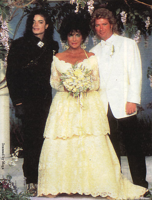 A un passo dai 60 anni Liz sposa Larry Fortensky, un operaio edile di vent’anni più giovane conosciuto mentre entrambi combattevano la dipendenza da alcol (più lei) e droga (più lui) ricoverati al Betty Ford Center. Un giovanotto cui si poteva perdonare molto, ma non la pettinatura. Nozze celebrate nel Neverland Ranch di Michael Jackson, grande amico della sposa e maestro di cerimonie. Anche questa volta Liz sceglie il giallo in una tonalità chiarissima, Valentino (sì proprio lui, il perfido) le dona un abito tutto balze da bella del sud, modello zia di Scarlett O’Hara. La coppia divorzia il 31 ottobre 1996. Otto e sto.