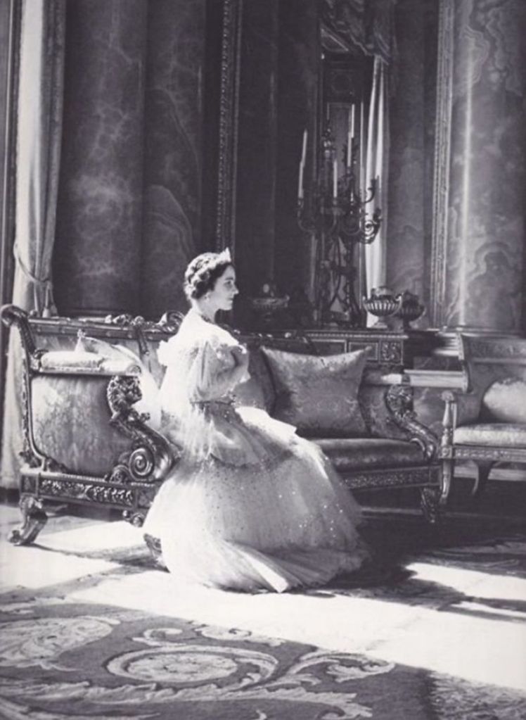 La Duchessa di Cornovaglia ha spalle larghe e sangue freddo, e affronta con l’ironico garbo che le è proprio anche il ruolo di matrigna, in un giorno in cui la donna che l’ha preceduta è naturalmente – e giustamente – nei pensieri di tutti. Per tenere un low profile opta per un cappello di Philip Treacy già indossato in altre occasioni ma poi incerta sul colore da scegliere per non sembrare troppo la madre dello sposo – ma neanche una che passa per caso – finisce col non scegliere. La sua sarta di fiducia Anna Valentine le confeziona un capetto diviso in due da un ricamo dorato: grigio-azzurro nella parte superiore rosa-beige in quella inferiore caratterizzata da una girandola di pieghe piatte. Ricordo che all’epoca qualcuno disse che ricordava un pandoro; peccato, le scarpe metallizzate di Jimmy Choo sono così belle! Boh.
