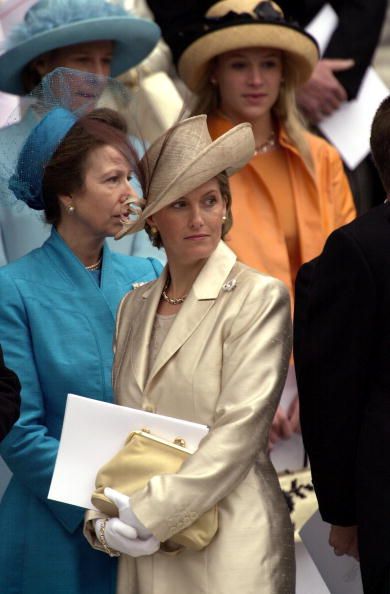 Colori brillanti e cappelli fantasiosi anche per le altre royal ladies: mini azzurra e toque per Anne (con una decorazione rigida che sembra la coda di un pavone), rosa con turbante per Margaret, e un favoloso giallo chartreuse per The Queen Mother.