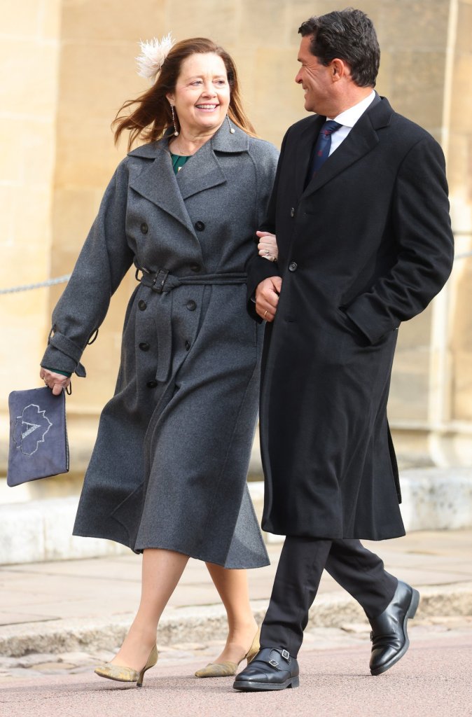 Il figlio di Benedikte, Gustav zu Sayn-Wittgenstein-Berleburg arriva con la moglie Carina: raro esempio di coppia in cui l’abito di lei è coordinato alle guance di lui. Carina, che è una ragazza prudente, coordina la mise pure a quella della suocera, che non si sa mai. Purtroppo l’effetto è piuttosto diverso: in questo caso l’ennesimo cape dress fa effetto palandrana; lo scollo piuttosto che slanciare accorcia il collo, peggiorato dal collier di perle dall’ambigua lunghezza. Apprezzo il riuso delle scarpe Manolo Blahnik indossate il giorno prima, ma shock.