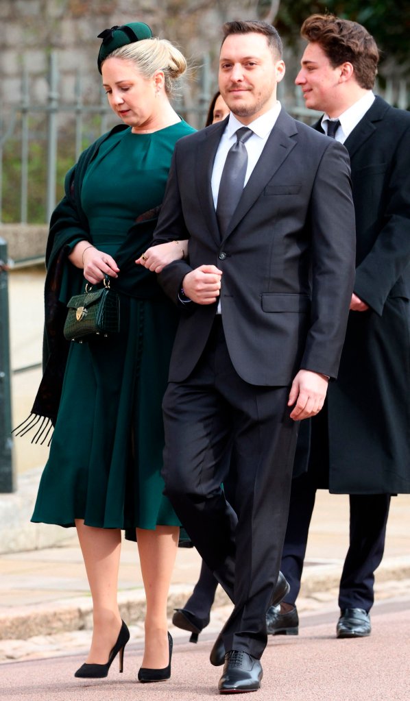 Il fratello minore della sposa, Philippos, è accompagnato dalla moglie Nina e dal di lei padre Thomas Flohr, miliardario svizzero fondatore e proprietario di VistaJet, la più importante compagnia di aerei privati a noleggio del mondo. Nonostante la giovane età, il bell’aspetto e la sconfinata disponibilità, la ragazza raramente perde il suo stile zia Assuntina; confermato anche questa volta scegliendo l’abito azzurro di Adam Lippes con drappeggio (per cui molti si sono chiesti se celasse una lieta novella); non sarebbe brutto ma ha una lunghezza improponibile, che non trae alcun giovamento dalle scarpine Manolo Blahnik, per giunta bianche. Non mi convince, shock.