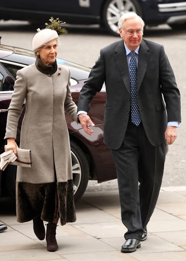 Cosa c’è di più classico del bianco e blu in primavera? Nulla, devono essersi dette le due ex cognate Anne e Sarah, che si sono ritrovate vestite in modo molto simile: giacca bianca, gonna e cappello blu. La Princess Royal ha la fortuna, o l’abilità (o entrambe) di mantenere a settant’anni la linea sottile dei venti, il che le consente di pescare nell’armadio capi autenticamente vintage: quella gonna con la doppia piega piatta negli anni ’70 la portavano tutte. Sarah è meno rigorosa, più disordinata, ma è il suo fascino; cercherei solo di controllare un po’ meglio la chioma, e magari avrei preso una taglia in più del giacchino di Veronica Beard cui avrei messo dei bottoni dorati, in armonia con le borchie della borsetta Ethan K. Discreta, mentre Anne l’adoro proprio. Boh la duchessa, chic la principessa.