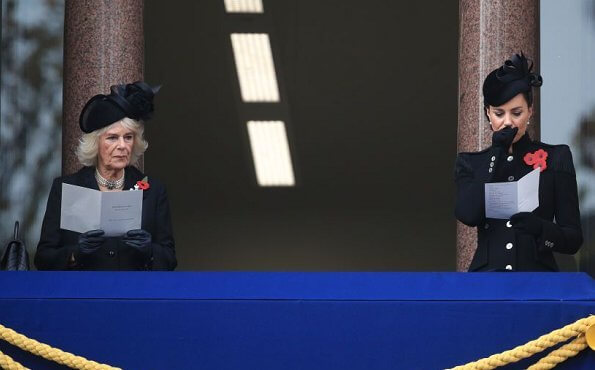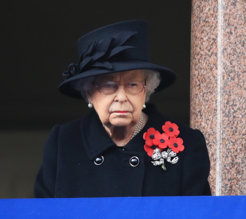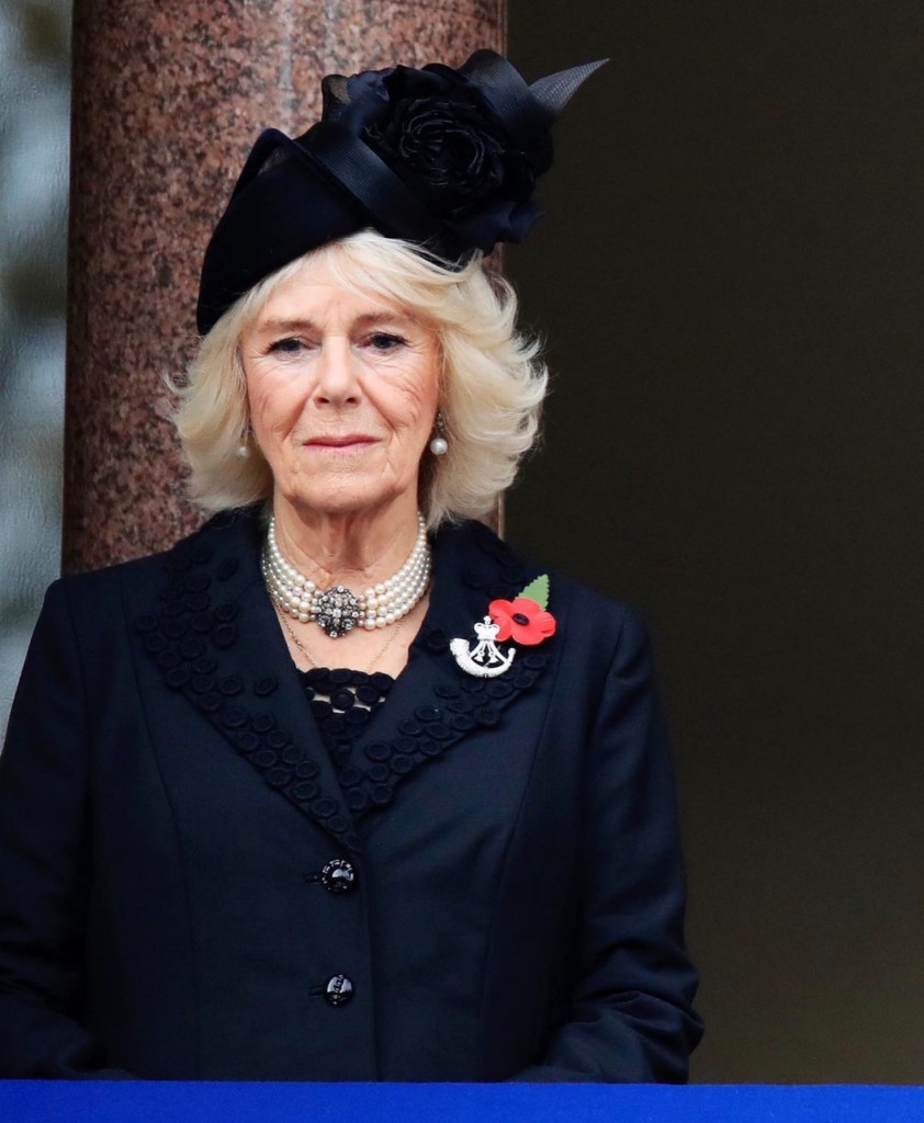 Come ieri, la Regina ha fermato i tradizionali papaveri di carta con la Dorset Bow Brooch, appuntata su un delizioso cappottino bouclé, Camilla sfoggia un cappello con abbondanti piume nere che farebbe venire l’acquolina a qualunque bersagliere, mentre Catherine s’è vestita da ussaro, in fondo è una cerimonia militare, no?